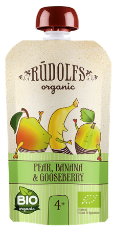 RŪDOLFS nuo 4 mėn., kriaušių, bananų ir agrastų tyrelė, 110 g