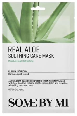 SOME BY MI Real Aloe Soothing Care Mask yra raminamoji ir giliai drėkinanti lakštinė veido kaukė, skirta jautriai, sausai ir sudirgusiai odai nuraminti bei atgaivinti.