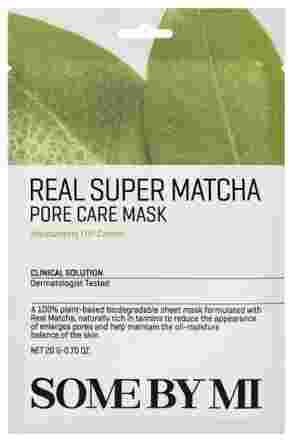 SOME BY MI Real Super Matcha Pore Care Mask yra veganiška lakštinė veido kaukė, praturtinta matcha arbatos ekstraktu, skirta giliam porų valymui, sebumo (riebalų) išsiskyrimo kontrolei ir odos drėkinimui.