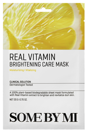 SOME BY MI Real Vitamin Brightening Care Mask yra skaistinamoji lakštinė kaukė, praturtinta vitaminu C ir antioksidantais, skirta atgaivinti papilkėjusią odą, sumažinti tamsias dėmes ir išlyginti odos atspalvį.