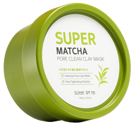 SOME BY MI Super Matcha Pore Clean Clay Mask veido kaukė – molio kaukė, sugerianti riebalų perteklių ir kitus nešvarumus. Jos sudėtyje yra azijinės centelės ekstrakto, arbatmedžio lapų vandens, Houttuynia Cordata miltelių ir Chamaecyparis Obtusa lapų ekstrakto, kurie ramina odą, šalina riebalų perteklių ir suteikia odai drėgmės.