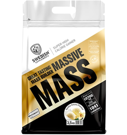 Swedish Supplements Massive Mass, 3500g. Angliavandeniu ir baltymu milteliai kokteiliui ruošti su saldikliais.