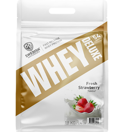 Swedish Supplements Whey Deluxe, 1800g. Baltymu milteliai kokteiliui ruošti su saldikliais.