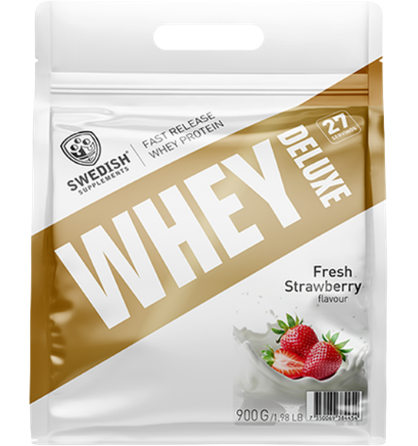 Swedish Supplements Whey Deluxe, 900g. Baltymu milteliai kokteiliui ruošti su saldikliais.