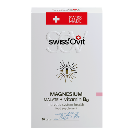 SWISS OVIT Magnesium Malate 150 mg + Vit. B6 kapsulės, 30 vnt.
