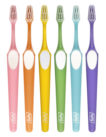 <p>Dantų šepetėlis turi dviejų lygių minkštus šerelius, todėl lengviau pasiekiamas dantų paviršius. Ilgesni šereliai valo distalinę sritį tarp dantų ir išilgai dantenų, o trumpesni – efektyviai valo kitų dantų paviršius. Kūginė šepetėlio galvutė ir patvari neslystanti rankena.</p><p><br></p><p>*Dantų šepetėlių spalvos pasirinkti negalima.</p>