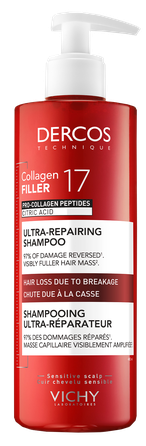 NAUJOVĖ: pirmasis specialiai regeneruojantis DERCOS plaukų ir galvos odos priežiūros produktas. Praturtintas citrinų rūgštimi ir prokolageno peptidais, kurie stiprina plaukų skaidulas (4) ir apsaugo nuo plaukų slinkimo dėl trapumo.