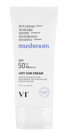 VT Airy Sun Cream – tai gaivus, lengvas ir „kvėpuojantis“ apsauginis kremas nuo saulės, sukurtas dehidratuotai ir jautriai odai. Sudėtyje naudojamos 3D Humid Matrix ir Moist Blending EX technologijos, o ši trigubos funkcijos formulė suteikia SPF 50+ PA++++ apsaugą, tuo pačiu ramina, drėkina ir suvienodina odos atspalvį – nepalikdama balto sluoksnio.