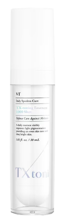 VT Cosmetics TX-Toning Essence 2000 Shot – tai intensyvios priežiūros esencija, skirta akivaizdžiai pagerinti įsisenėjusią hiperpigmentaciją ir odos netobulumus, suteikiant tolygesnį odos toną ir skaistesnę veido spalvą. Sudėtyje esanti traneksamo rūgštis padeda pagerinti odos atspalvį ir sukurti švarios, skaidrios odos įspūdį. Taip pat praturtinta glutationu ir niacinamidu, kurie padeda slopinti melanino gamybą, kad oda atrodytų šviesesnė, skaistesnė ir švytinti.