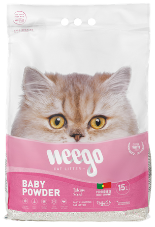 WEEGO BABY POWDER 15L cementuojantis smėlis katės tualetui, 15 L
