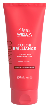 Dažytų plaukų kondicionierius „Wella Professionals COLOR BRILLIANCE CONDITIONER COARSE“ ( šiurkštiems plaukams prižiūrėti). Drėkina dažytus plaukus, suteikia jiems minkštumo ir blizgesio. Išsaugo sodrią ir ryškią spalvą. Kapsuliuotos vario molekulės „Brilliance-Blend ™“ išlaiko ryškią plaukų spalvą. Vitaminas E ir histidinas kontroliuoja oksidacijos procesą ir apsaugo plaukų spalvą. Žaliųjų citrinų ekstraktas papildo plaukus reikiamų vitaminų ir apsaugo juos nuo žalingo laisvųjų radikalų poveikio.