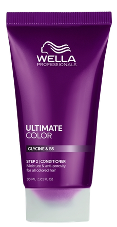 Wella Professionals ULTIMATE COLOR Drėkinantis dažytų plaukų kondicionierius. Drėkinantis, lengvai išskalaujamas kondicionierius, kuris glotnina plauko kutikulę, padeda lengviau iššukuoti plaukus ir suteikia jiems švelnumo. Dažytų plaukų priežiūra iš vidaus ir išorės – sveikai atrodančiai plaukų struktūrai. Be gyvūninės kilmės ingredientų, dermatologiškai patikrintas ir praturtintas glicinu bei Metal Purifier technologija, padedančia apsaugoti plaukus nuo laisvųjų radikalų sukeliamos žalos, taip pat vitaminu B5, kuris padeda užrakinti drėgmę.