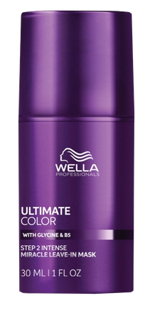 Wella Professionals ULTIMATE COLOR ULTIMATE COLOR Miracle nenuplaunama kaukė. Drėkinanti, nenuplaunama formulė, skirta spalvos ryškumui ir spindesiui išsaugoti. Sudėtyje nėra gyvūninės kilmės ingredientų. Su glicinu ir Metal Purifier technologija, kuri padeda apsaugoti plaukus nuo laisvųjų radikalų sukeliamos žalos, bei vitaminu B5, kuris atkuria ir užrakina drėgmę plaukuose. Ši 3-in-1 plaukų kaukė suteikia UV apsaugą ir padeda sumažinti plaukų lūžinėjimą net iki 4 kartų*.