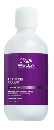 Wella Professionals ULTIMATE COLOR Dažytų plaukų šampūnas. Šis šampūnas be sulfatų, švelniai valo ir ramina galvos odą. Sodrios, kreminės putos švelniai pašalina nešvarumus ir padeda išlaikyti spalvos ryškumą ir gyvybingumą. Formulė su glicinu ir Metal Purifier technologija padeda apsaugoti plaukus nuo laisvųjų radikalų sukeliamos žalos, o vitaminas B5 padeda užrakinti drėgmę nuo šaknų iki galiukų. Dermatologiškai patikrinta, subalansuotas pH, be gyvūninės kilmės ingredientų.