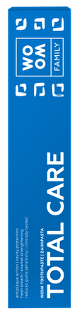 Woom Family Complex – visapusei priežiūrai skirta dantų pasta, kuri efektyviai mažina dantų jautrumą ir pasižymi antibakteriniu poveikiu. Neleidžia susidaryti apnašoms ir akmenims, tvirtina dantenas bei palieka ilgalaikį gaivumo pojūtį.